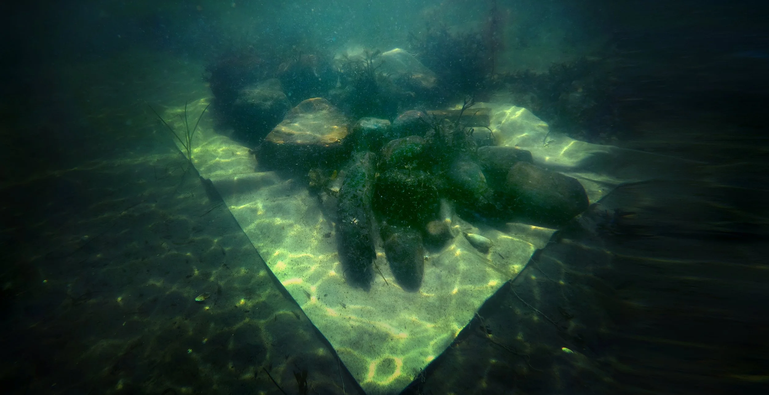 Hvert værk bevæger sig mellem to rum — fra installationer i havet til et videre arbejde på land, hvor materialet fastholdes og får sin endelige form - et samspil mellem handling og havets egne processer.